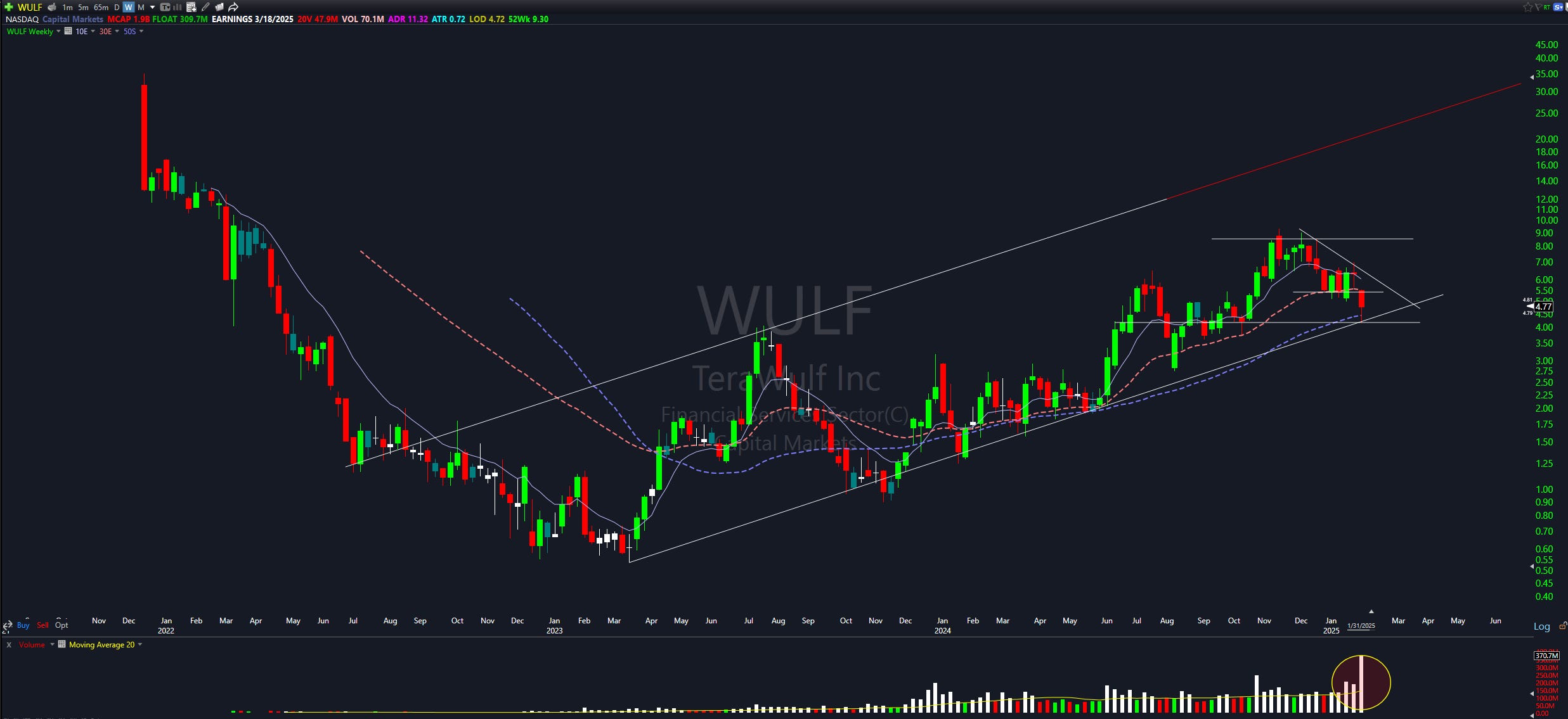 Highest volume ever volume on weekly candle. Tested the 10 WMA Previously, but currently has a inside weekly candle.