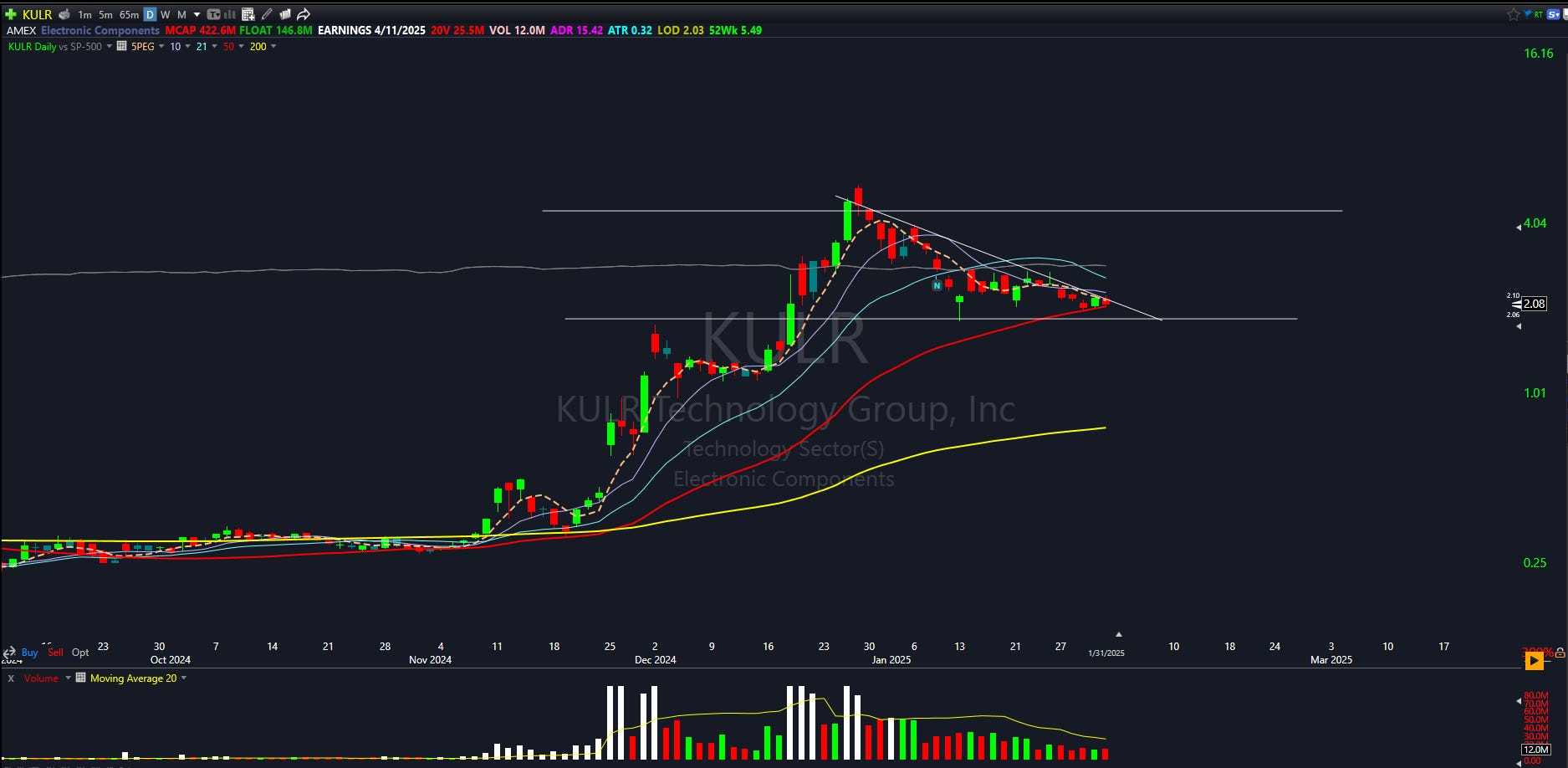 Small stock with pretty good rewards. Still considered a small cap since it's below 2 billion market cap. Will be watching to see if we can buy weakness with a stop near 3.50