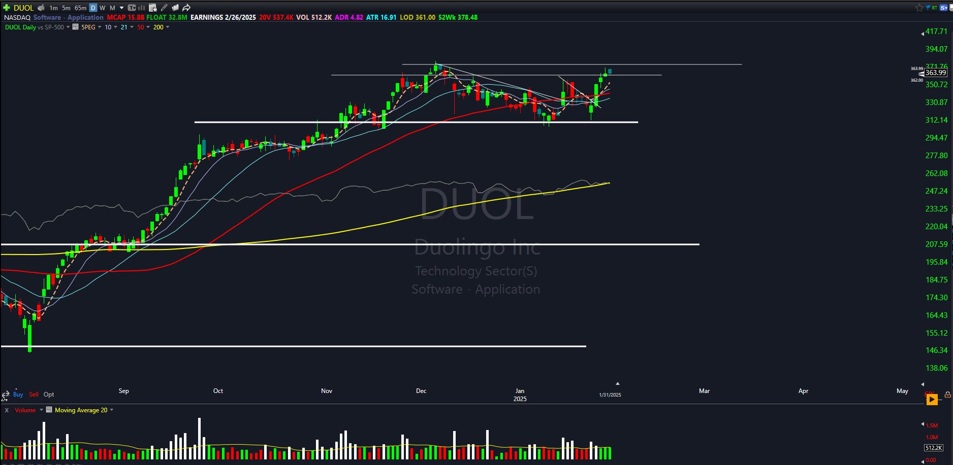 23 Week Base. Above 200 SMA. Surfing 5/10/20/50